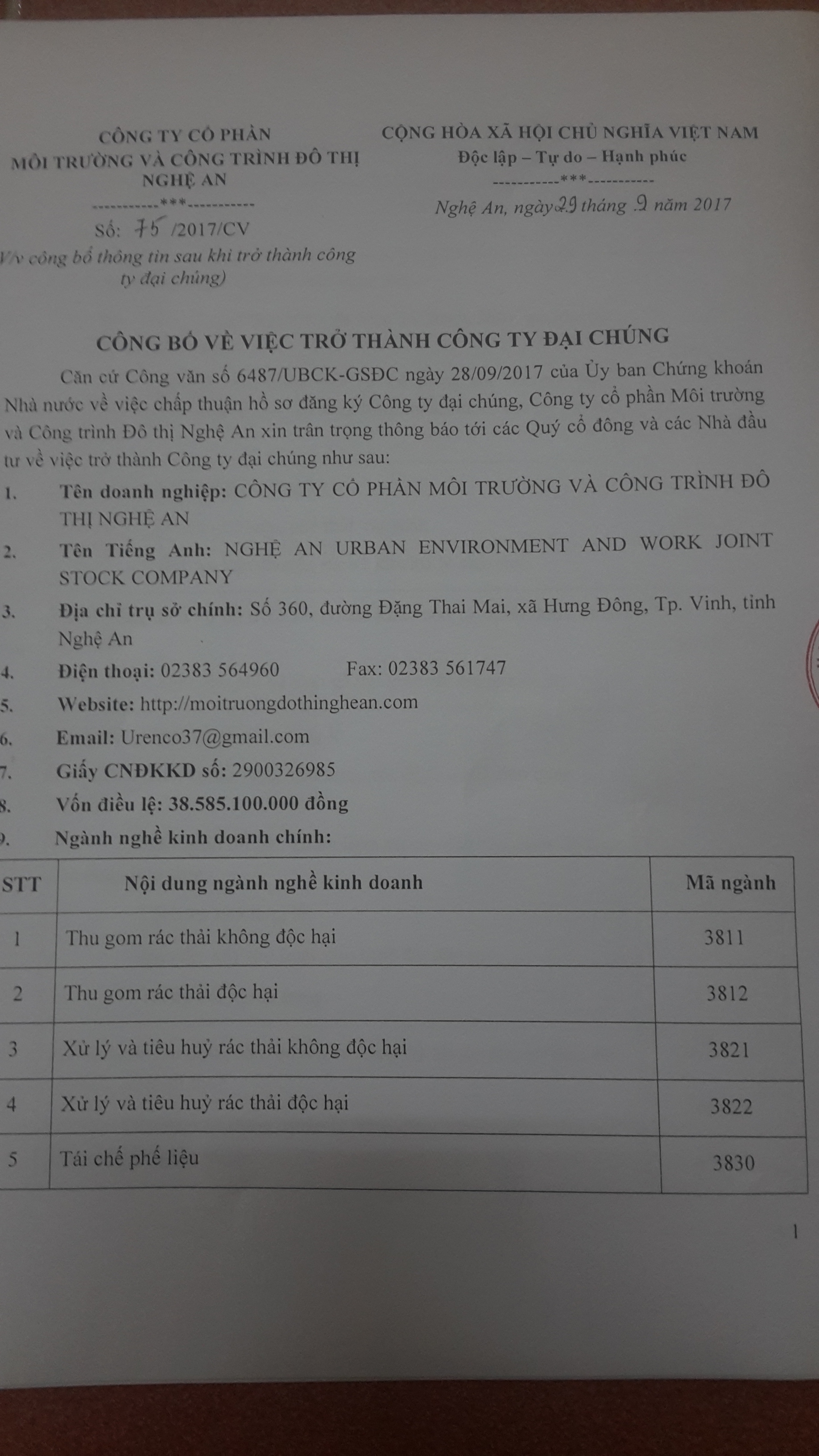 Hưởng ứng phong trào thi đua lập thành tích chào mừng 42 năm ngày giải phóng miền nam(30/04/1975- 30/04/2017) và ngày Quốc tế Lao động 01/5. Công đoàn Công ty cổ phần môi trường và công trình đô thị Nghệ an phối hợp với các phòng chuyên môn công ty tổ chức giải cầu lông nhằm góp phần đẩy mạnh phong trào tập luyện thể thao, nâng cao sức khỏe, tạo không khí phấn khởi, vui tươi, sôi nổi, nâng cao tinh thần làm việc của cán bộ công nhân viên trong đơn vị