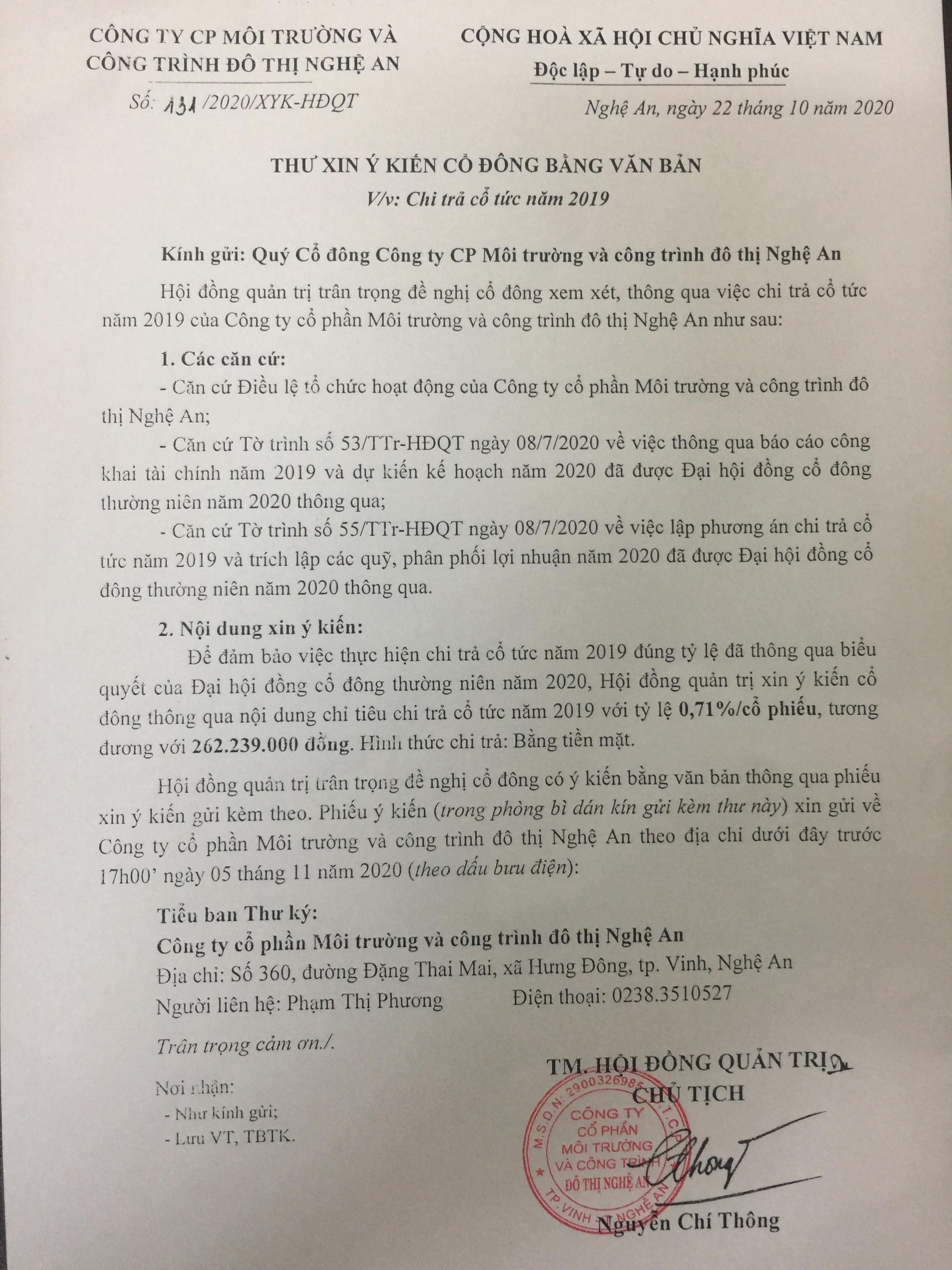 1.THƯ XIN Ý KIẾN CỔ ĐÔNG BẰNG VĂN BẢN