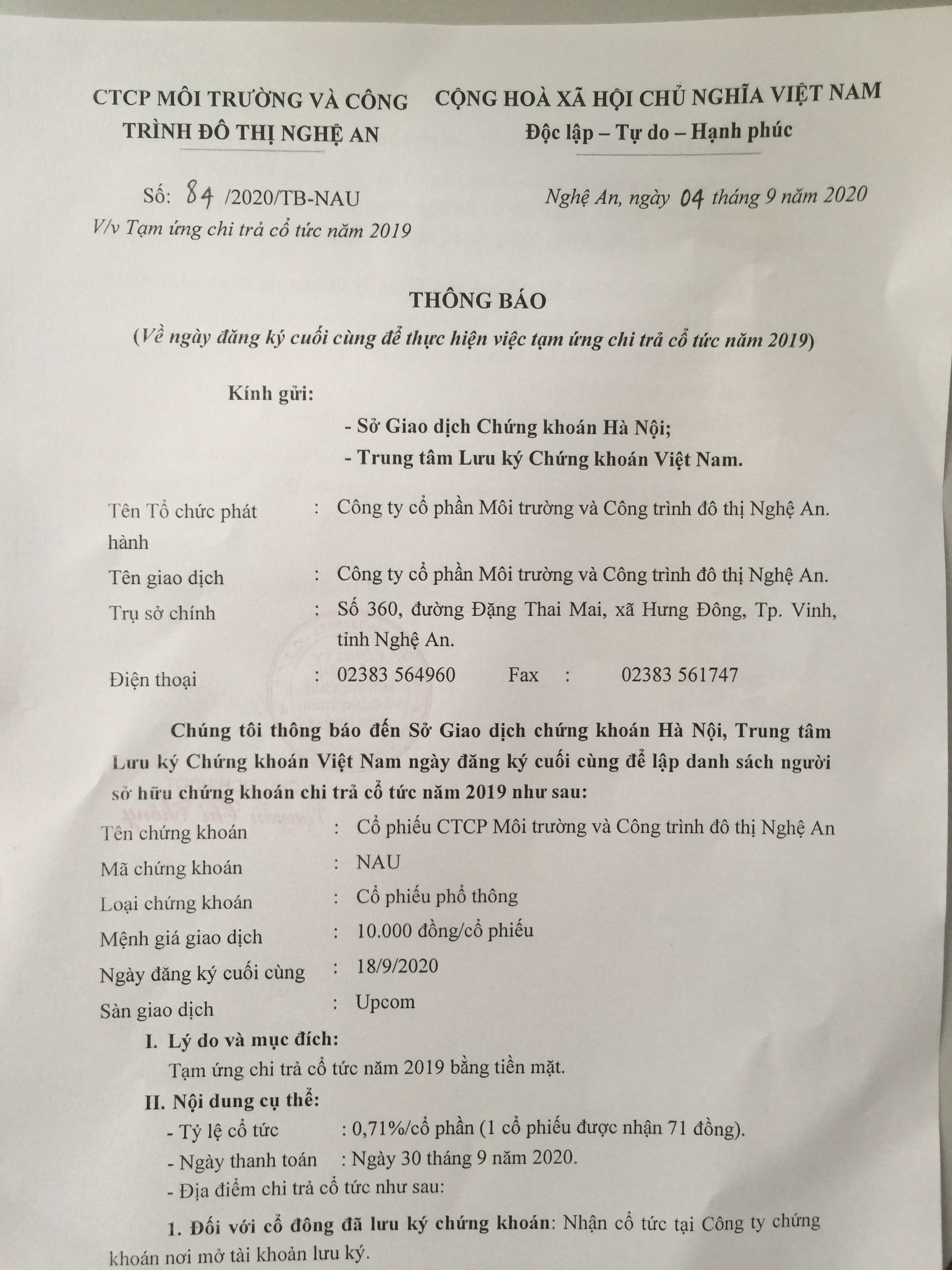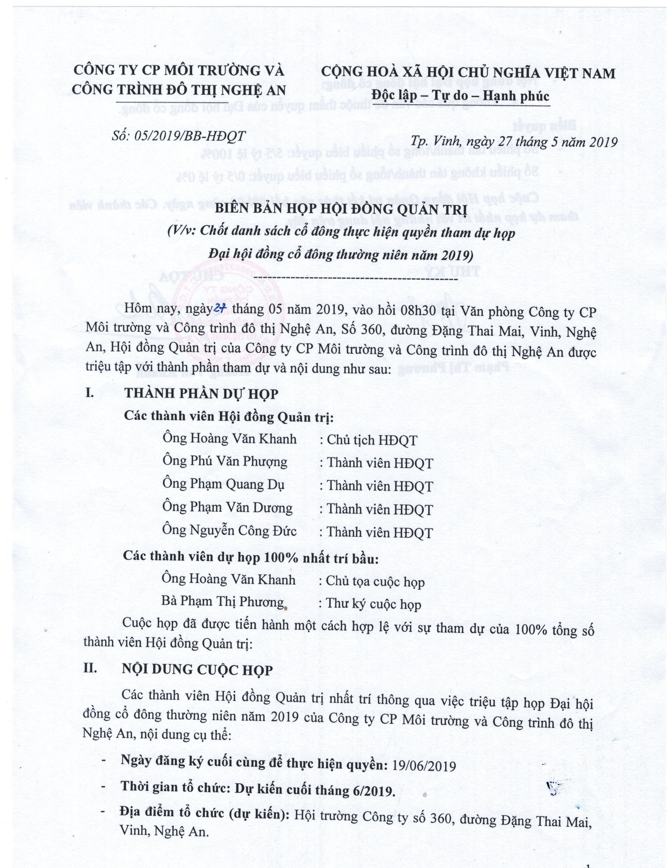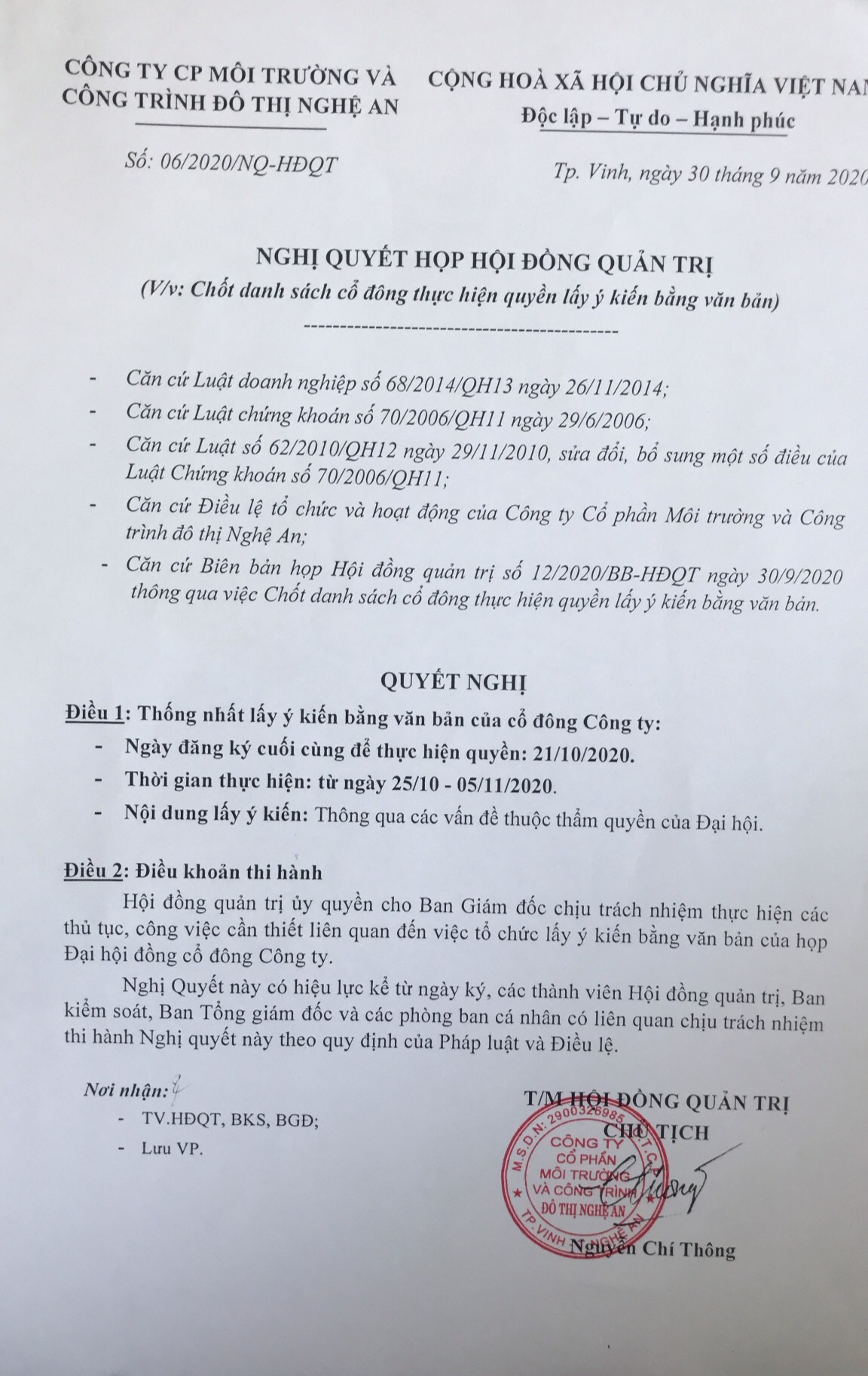 Nghị quyết về việc thông qua nội dung chi trả cổ tức năm 2019 (Được thông qua bằng hình thức lấy ý kiến cổ đông bằng văn bản);