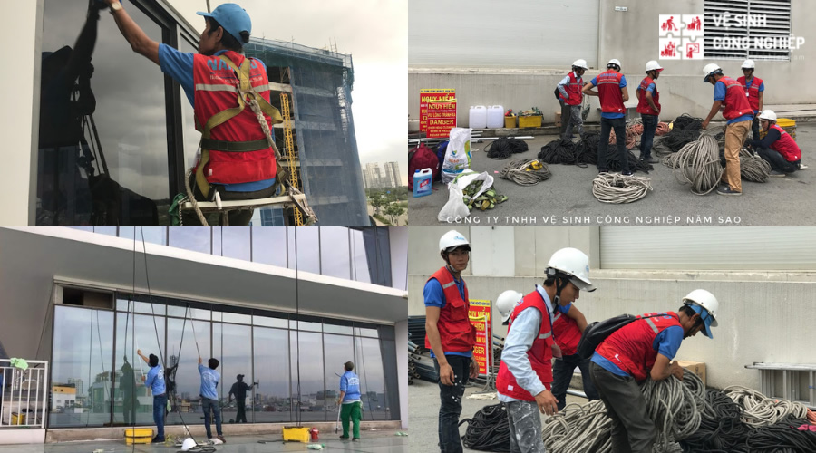- Lau chùi cửa kính, cửa gỗ, khung nhôm, và lang cang, cầu thang, hành lang.